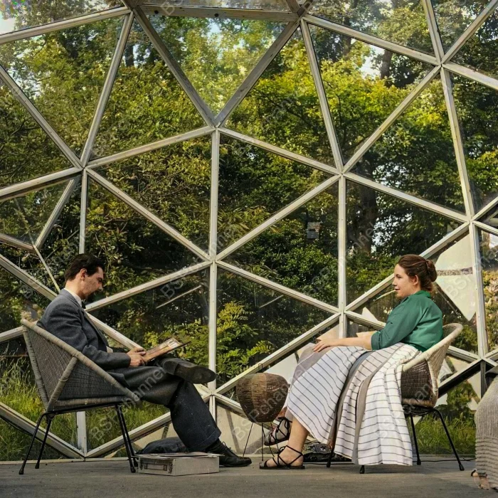 Необычный дом-купол, собранный из мозаичных стеклянных треугольников, стал авторским проектом Хью Поупа— его личной архитектурной мечтой и воплощением смелого дизайнерского видения.