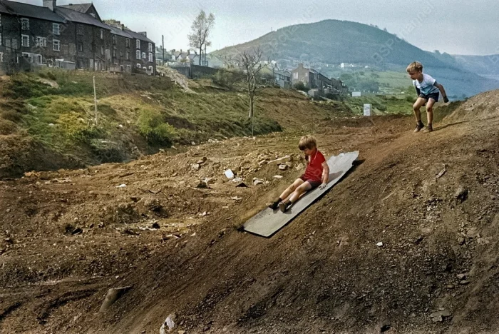 На фанере с горки. Уэльс, Великобритания, 1977 год.