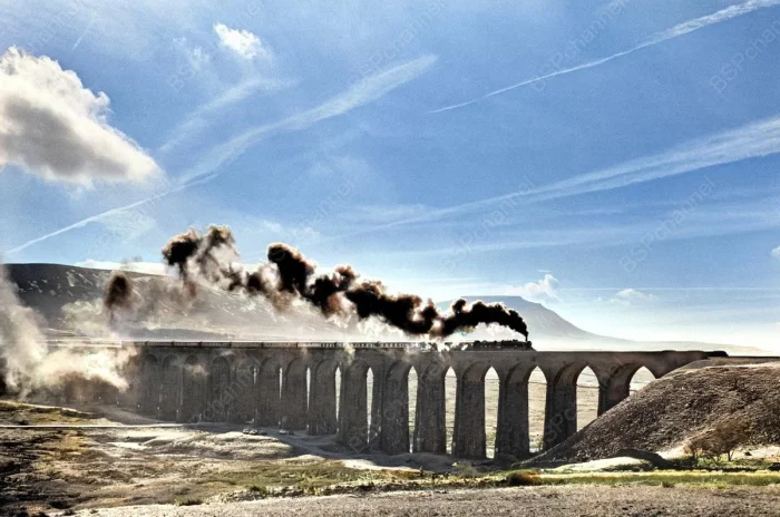 Железная дорога на виадуке. Сеттл-Карлайл, Йоркшир, 1986 год.