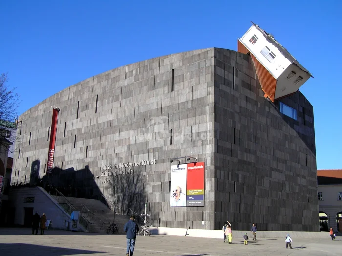 18. Инсталляция "Атакующий дом" на фасаде Венского музея современного искусства, Австрия