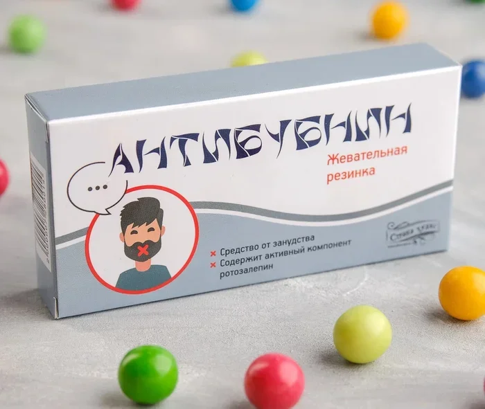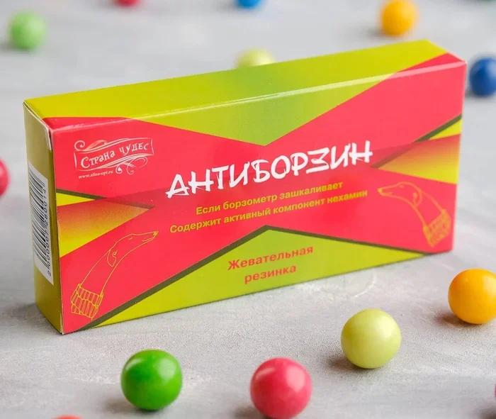 Жевательная резинка "Антиборзин". Ссылка на пачку