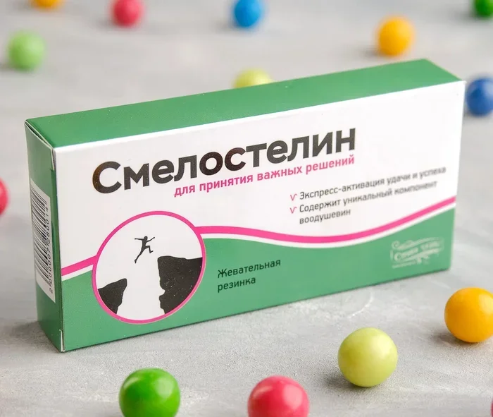 Жевательная резинка "Смелостелин". ссылка на пачку