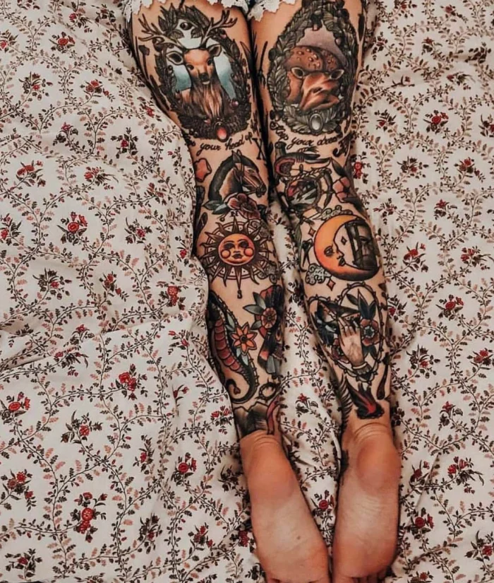 Ноги представляют собой обширную площадь для нанесения различных татуировок. Здесь можно разместить как миниатюрные изображения, так и масштабные композиции с продуманным сюжетом. В социальной сети Instagram недавно состоялся флешмоб, в рамках которого пользователи демонстрировали свои нательные рисунки на ногах. Среди них можно увидеть огромное разнообразие: от скромных, едва заметных эскизов до крупных, выразительных работ. Давайте рассмотрим возможные варианты оформления.