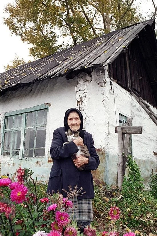 , это фото - самое грустное. Посмотри на мазанку(избушку) за её спиной - развалюха, давно требующая ремонта и приложения мужских рук - см. на крышу...