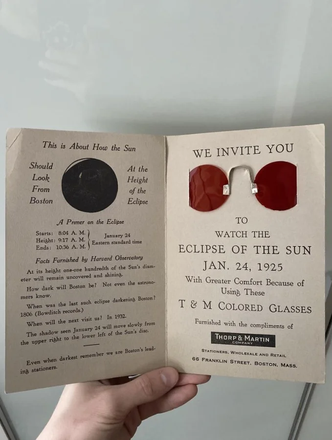 18. Винтажное приглашение на солнечное затмение 1925 года с защитными очками