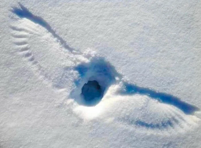 19. Следы охоты совы — отпечатки на снегу после удачной атаки