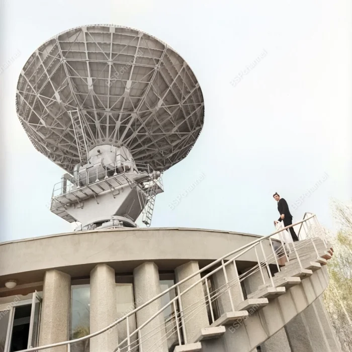 Параболическая антенна Новосибирской приемно-передающей наземной станции системы "Орбита", 1964 год.