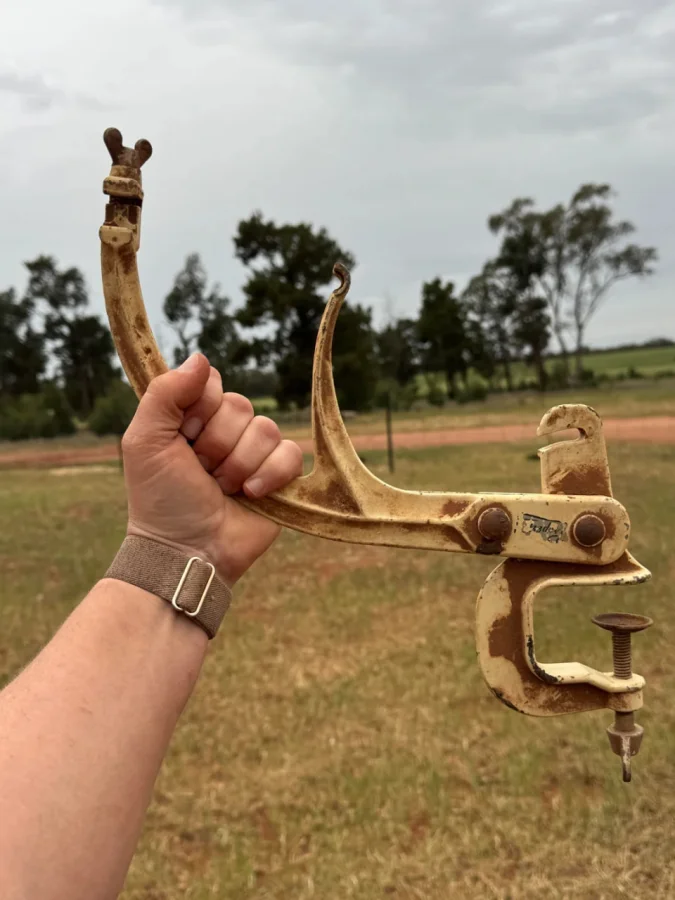 Это скребок для свиней, инструмент, который использовался при забое, чтобы счищать щетину с туши после ошпаривания.