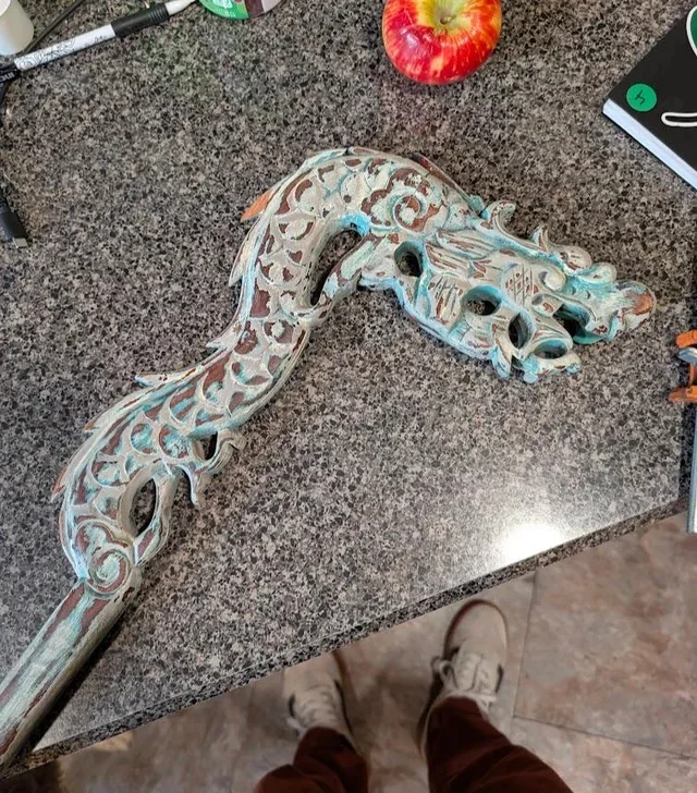 7. Что это за деревянная резная палка с краской?