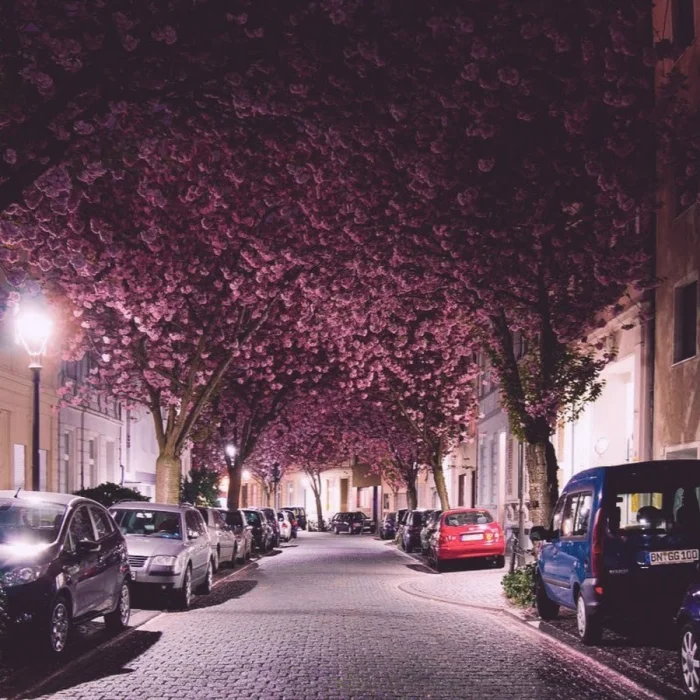 Весной улицы немецкого города превращаются в розовый цветущий туннель, создавая сказочную атмосферу.