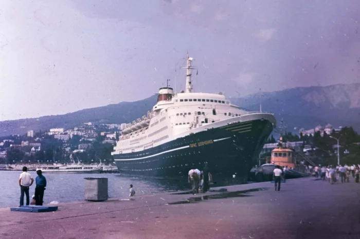 3. Пока не покидаем Ялту, а остановимся, чтобы полюбоваться огромным теплоходом "Тарас Шевченко", стоящим в местном порту.