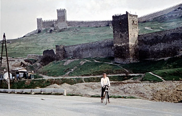 9. Велосипедист на фоне величественной Генуэзской крепости в Судаке.