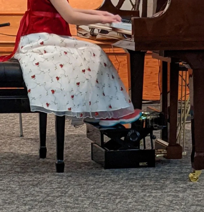 Специальный аксессуар для детей, чьи ножки не дотягиваются до педалей фортепиано