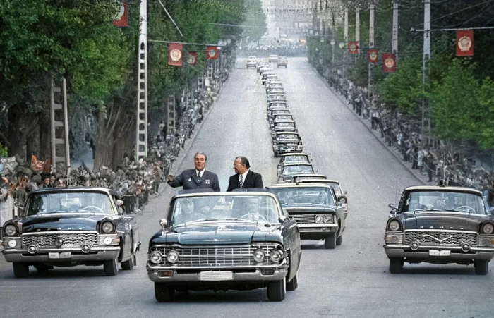Кортеж Леонида Ильича Брежнева. Снимок сделан во время торжества в честь 50-летия Молдавской ССР, Кишинёв, 1974 год.