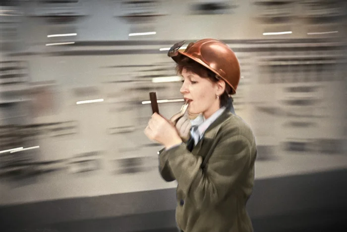 Молдавский металлургический завод в городе Рыбница. Галина Фролова, старший контролер цеха сталеплавильного производства, 1987 год.