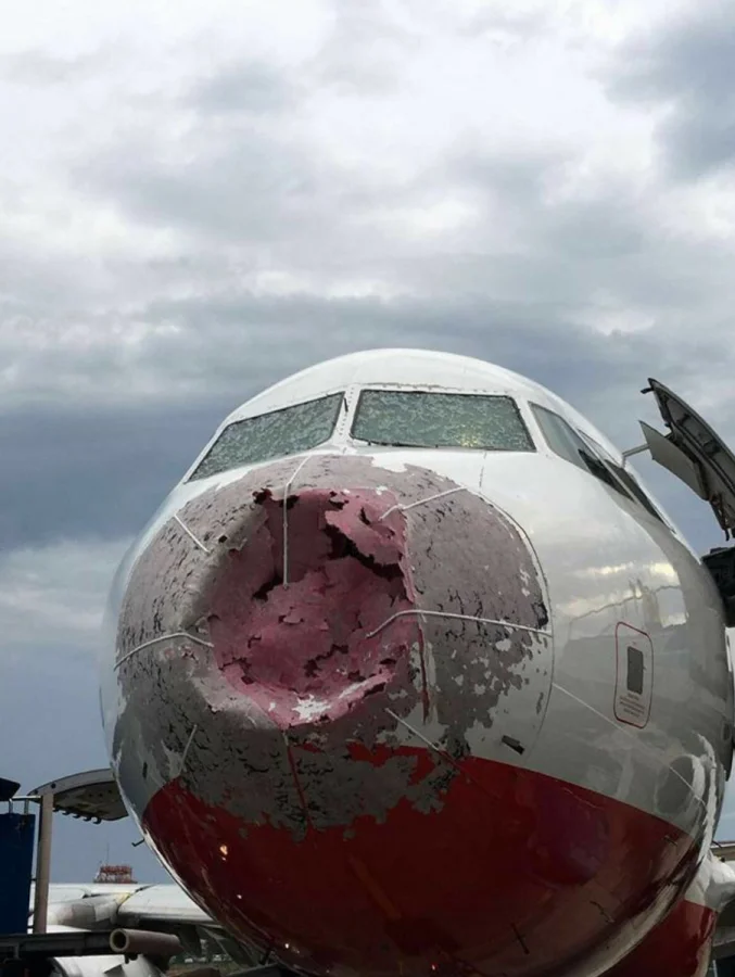 Поначалу пилоты думали, что контролируют ситуацию. Но погода резко ухудшилась, и пришлось экстренно сажать самолет. Что делать, если на тебя летят куски льда размером с футбольный мяч!