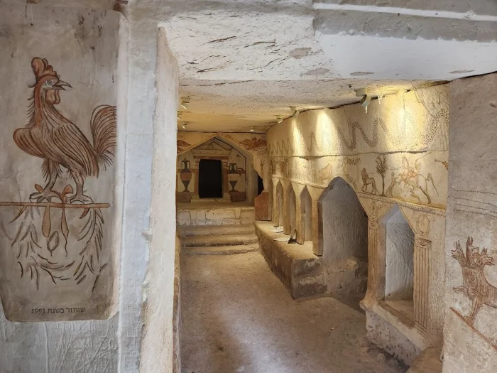 Особого внимания заслуживает Польская пещера, стены которой испещрены нишами для разведения голубей. Своё необычное название она обрела в 1943 году, когда польские военные оставили на одной из колонн памятную надпись "Варшава, Польша" и изображение орла - символа своих вооружённых сил. Не менее впечатляет Колумбарий с двумя тысячами гнёзд, свидетельствующий о важной роли голубеводства в эллинистическую эпоху, когда этих птиц использовали в пищу, для религиозных обрядов и в качестве источника удобрений.