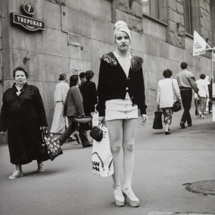 15. Девушка на Тверской улице в Москве, 1996 год.