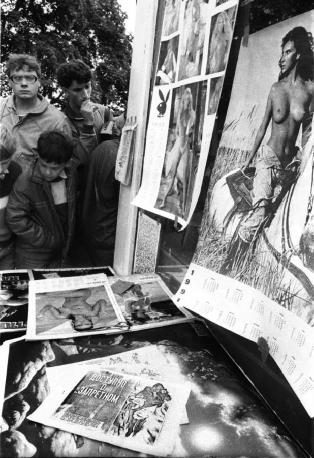Торговля первыми эротическими изданиями на улицах Москвы.