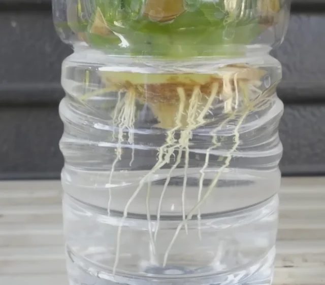 Сначала он взял плод, круговым движением вырвал листья разом и замочил их в воде до тех пор, пока не вылезли корни.