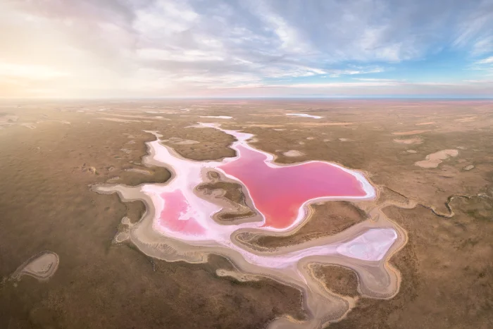 15. Австралийское озеро Хиллиер с его ярко-розовой водой напоминает гигантский десерт с малиновым кремом