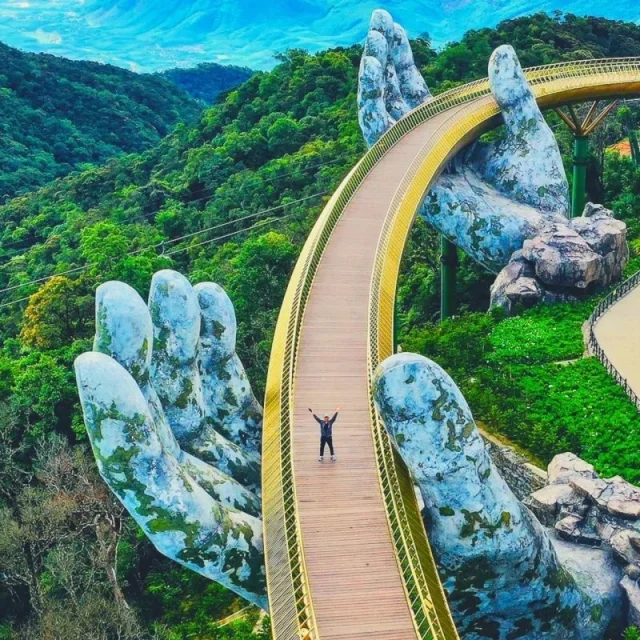 23. «Золотой мост» (Golden Bridge, по-вьетнамски — Cầu Vàng) — пешеходный мост на курорте Ba Na Hills в Дананге, Вьетнам