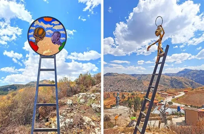 Тем не менее, это место — не просто проходной китчевый аттракцион для создания эффектных фотографий. Интерактивная художественная композиция, созданная мастером Тупаком Камарием Кандией, представляет собой искусное переплетение перуанского фольклора и научной фантастики, призванное раскрыть глубокую, порой неочевидную, связь здешней культуры с космосом.