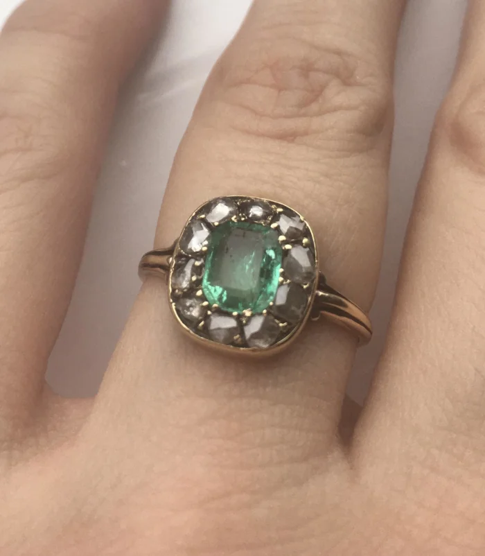 6. Золотое кольцо с изумрудом и бриллиантами позднего георгианского периода
