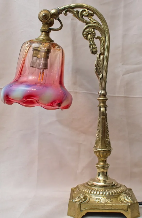 8. Французская настольная лампа 1920-х годов из латуни и уранового стекла