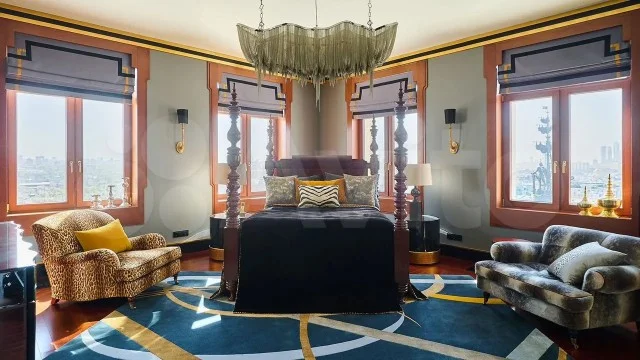 Квартира с уникальным ремонтом общей площадью 184 м² находится на 14 этаже и отличается панорамными видами на столицу.