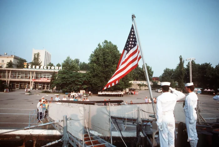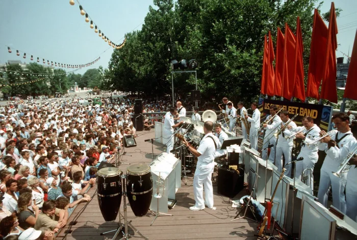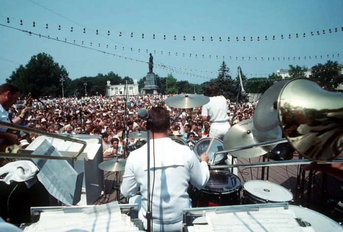 Совместный, советско-американский концерт на площади Нахимова в Севастополе.