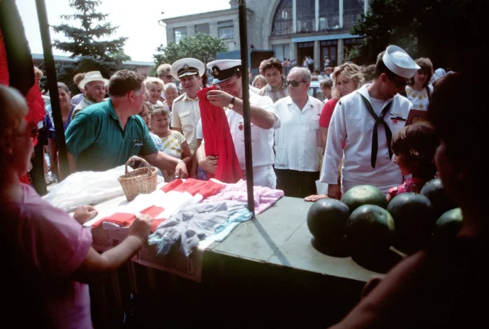 Любопытно смотреть на фотографии, где американские морячки что-то покупают на Центральном рынке в Севастополе.