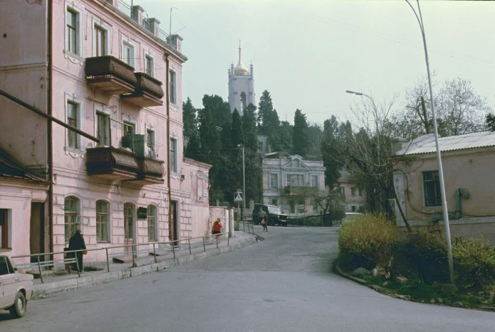А на улицах Ялты всё спокойно. На фото - Фонтанная улица и церковь Иоанна Златоуста.