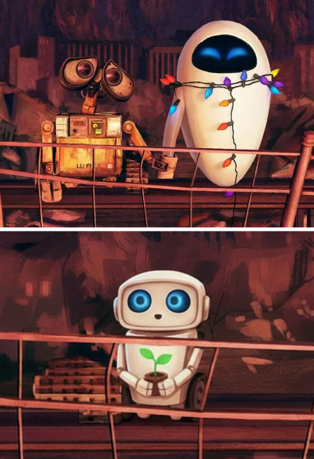 Бонус: милый малыш-робот и его родители ВАЛЛ-И и ЕВА из мультфильма «ВАЛЛ-И»