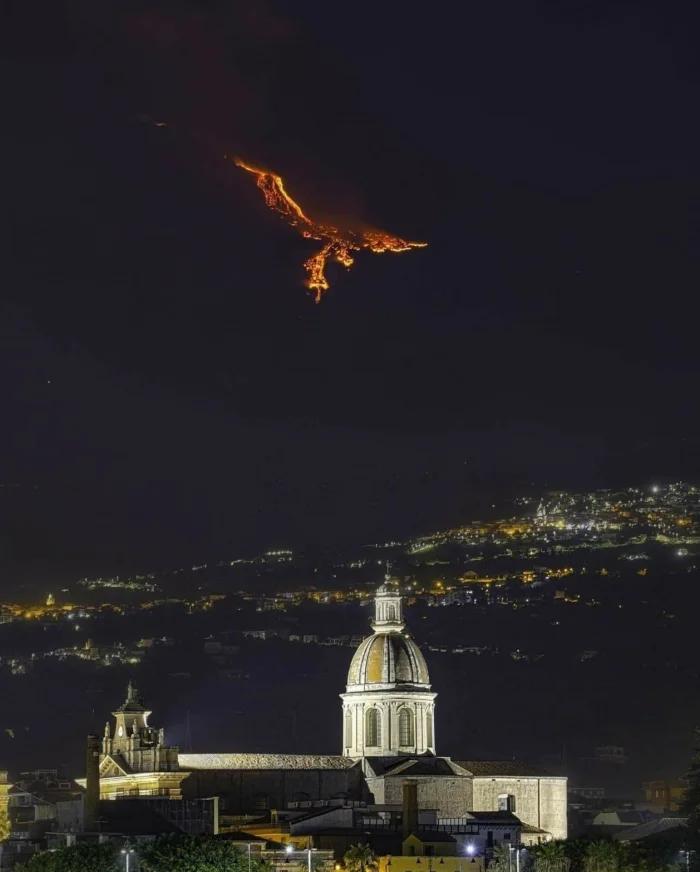 9. Огненная птица - извержение вулкана Этна, возвышающегося над итальянским городом Катания