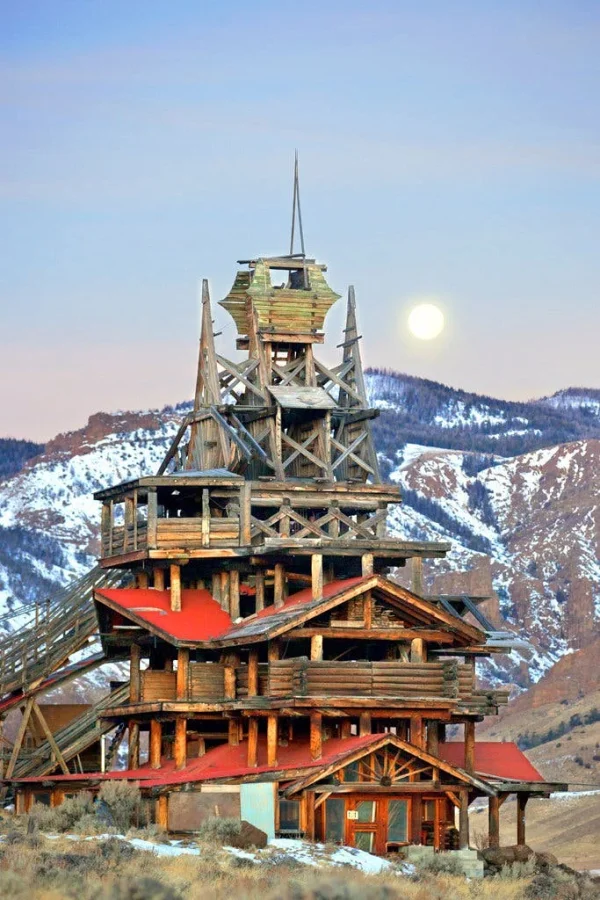 На протяжении долгих лет непрочное пятиэтажное здание, сложенное из брёвен, с причудливыми извилистыми лестницами и хаотично нависающими балконами, возвышается на холме в долине Вапити, расположенной неподалёку от города Коди в штате Вайоминг, соседствуя с Йеллоустонским национальным парком. Это строение, созданное в одиночку эксцентричным инженером Фрэнсисом Ли Смитом.
