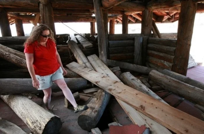 На протяжении двенадцати лет Смит возводил сруб, используя древесину, пострадавшую от пожара на горе Рэттлснейк. После того как огонь уничтожил лесные массивы, полуобгоревшие деревья разрешили бесплатно вывозить всем, кто участвовал в расчистке склонов. Набрав команду помощников, Смит перевёз брёвна в долину и приступил к реализации своей мечты.