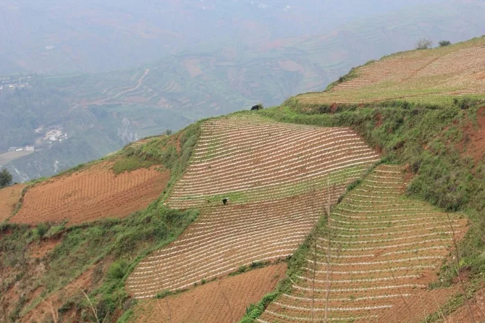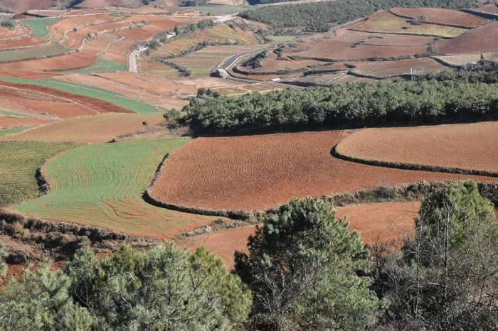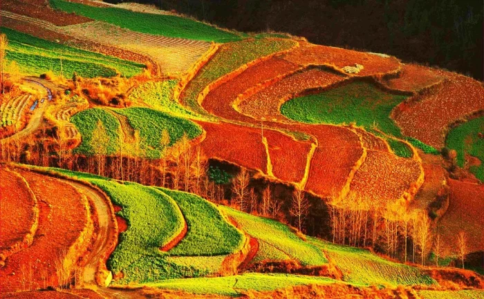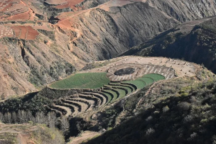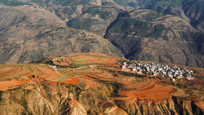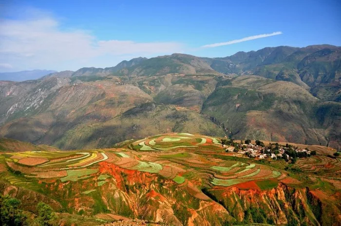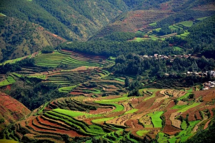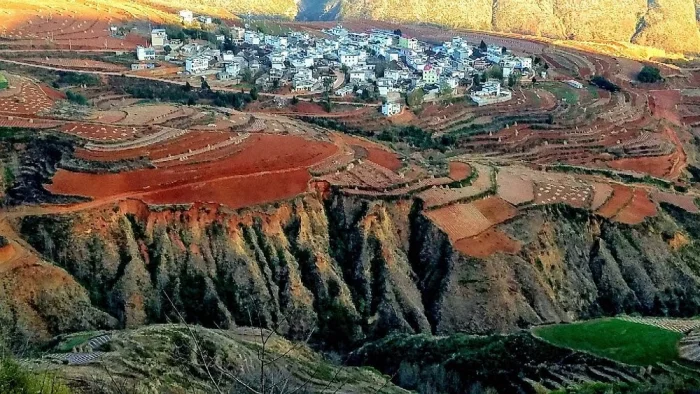 В южной части Китая, в провинции Юньнань, расположена небольшая деревня под названием Луосягоу. Местные террасные поля, созданные на богатой краснозёмной почве, представляют собой удивительное зрелище — словно ожившую картину, существование которой трудно представить в реальности.