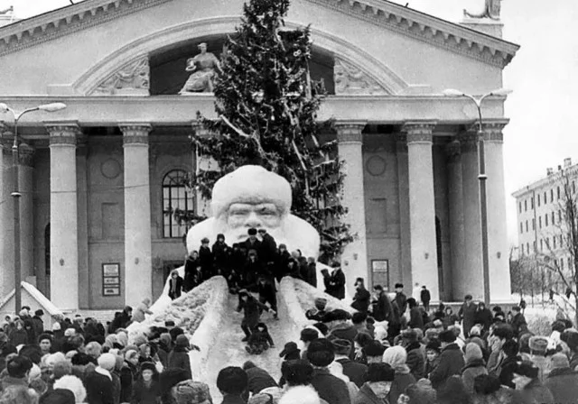 Театральный сквер. Дед Мороз и новогодняя ёлка. 1972–1975 годы. Калуга.