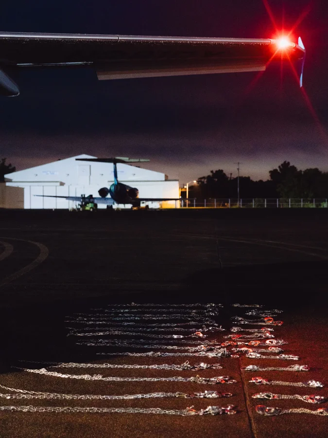 Наручники для рук и ног, оставшиеся после предыдущего этапа депортации, готовы к выдаче в пункте временного содержания Иммиграционной и таможенной службы в городе Александрия, штат Луизиана. Фотография сделана Кристофером Ли для издания TIME 29 мая.