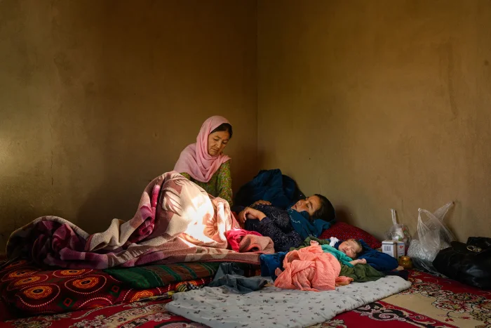 Гул Чаман, 43-летняя специалистка по родовспоможению из центрального региона Афганистана, провинции Дайкунди, посещает пациентку и ее только что родившуюся дочь в июле. Фотография сделана Элиз Бланшар для журнала TIME.