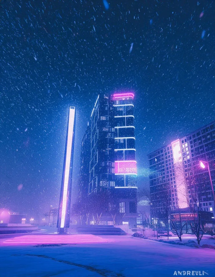 В сети попались фотографии Тюмени зимой, и выглядят они так, будто это кадры из фантастического фильма. Неоновые оттенки, розово-фиолетовый свет, снег, который отражает огни города, и улицы, словно перенесённые в киберпанковскую реальность.