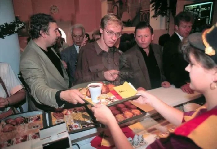 Первые посетители только открывшегося ресторана “Русское бистро”, Москва 1995 год