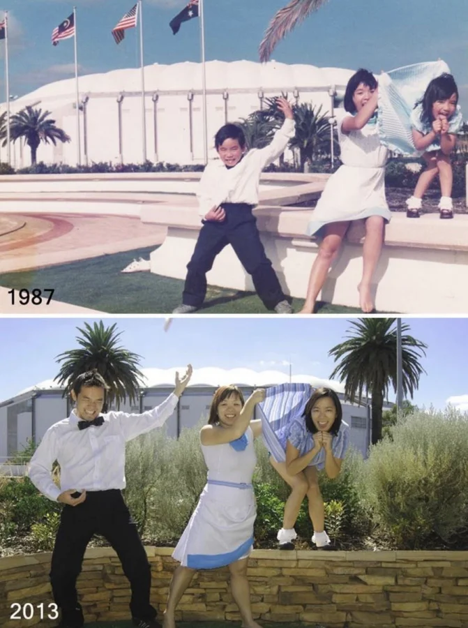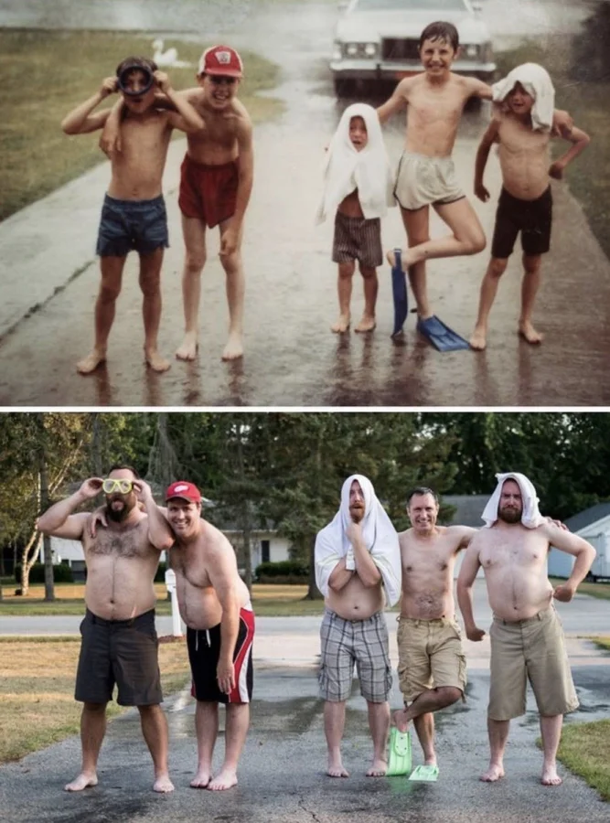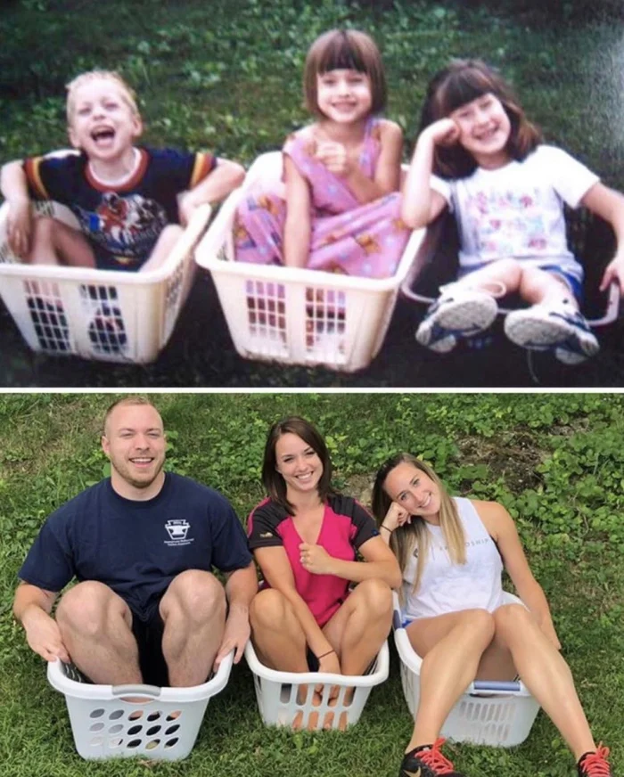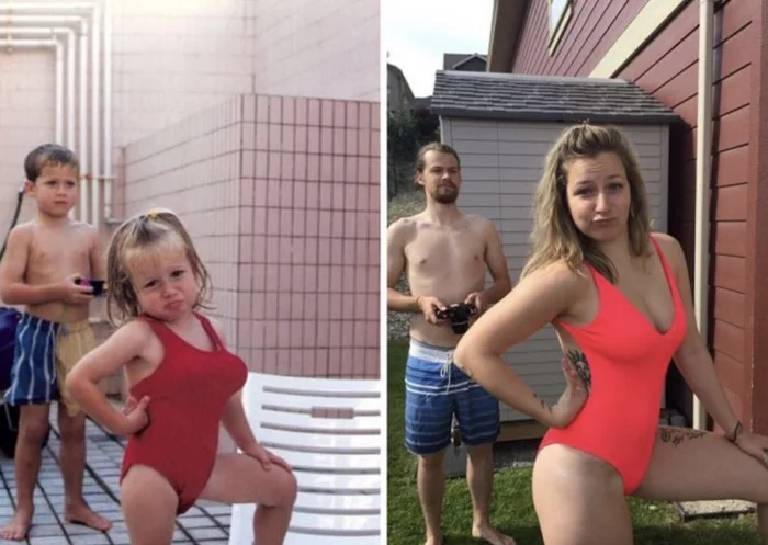 30+ примеров народного развлечения — уже взрослыми воссоздавать старые детские фото
