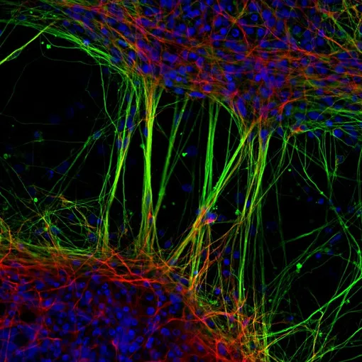Фотография нейронов, полученных из нервных стволовых клеток человека.