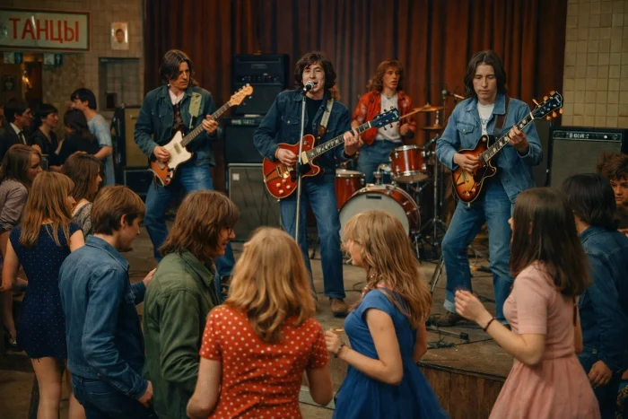 торчит он, в клешах, возле чёрных портьер,