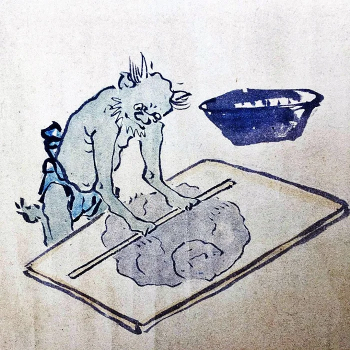 2. Демон раскатывает человека на лапшу. Япония (период Эдо). Автор Нитёсай (также известен как Мацуя Хэйдзабуро), работал в конце XVIII века