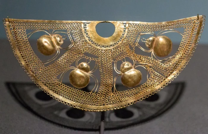 18. Золотое наносное украшение с четырьмя пауками. Перу, культура Моче, 525-550 гг. н.э.
