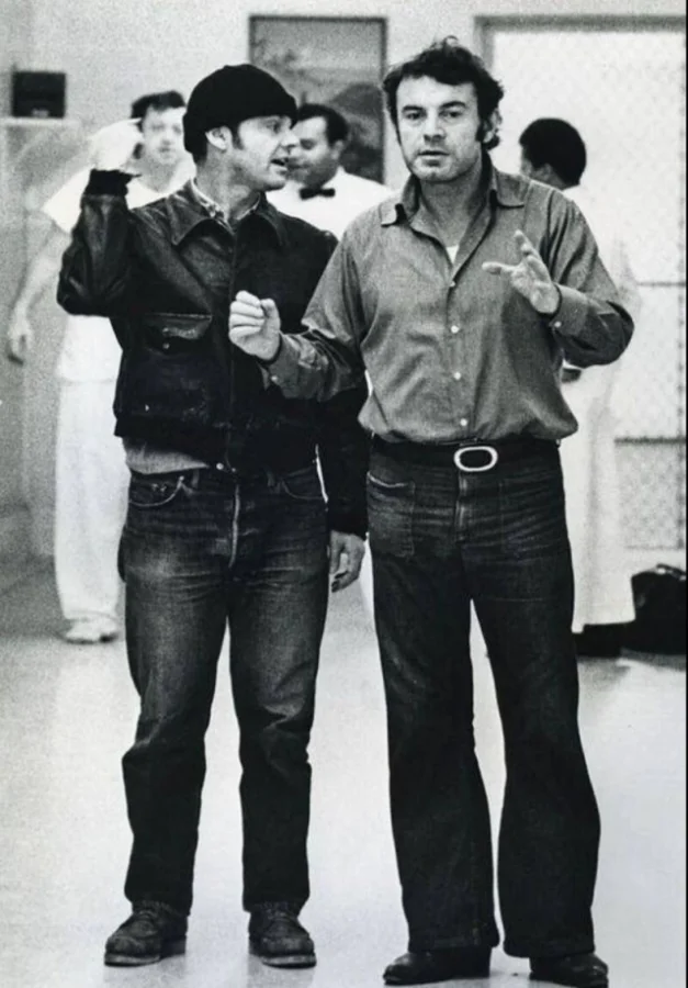 Джек Николсон и Милош Форман во время съёмок фильма "Пролетая над гнездом кукушки", 1975 год