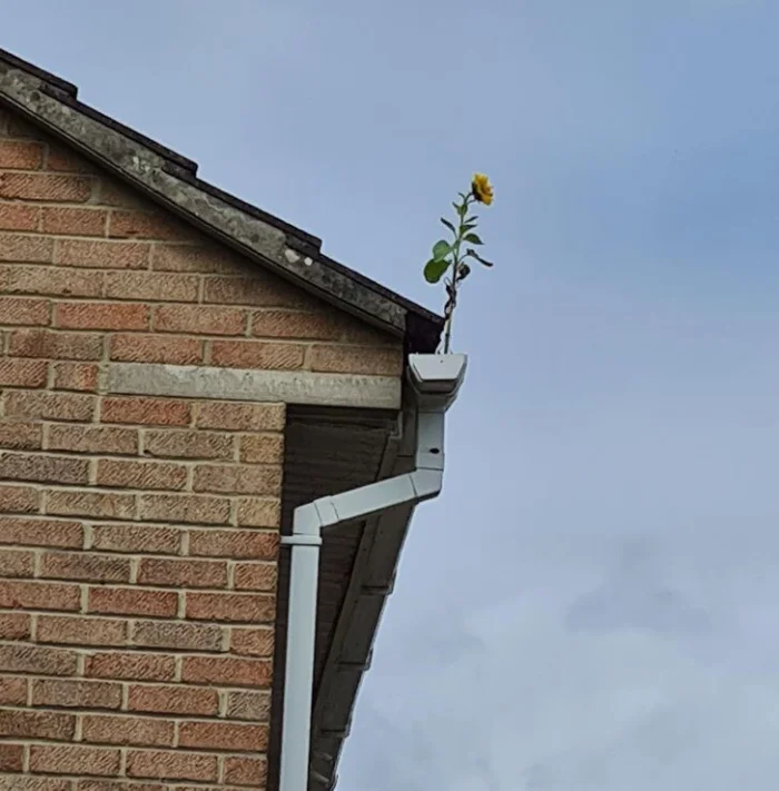 Из соседского водосточного жёлоба вырос подсолнух